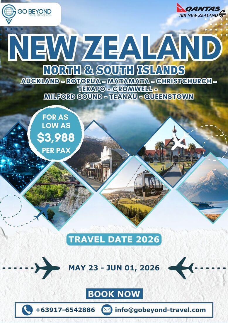 Auckland – Rotorua – Matamata – Christchurch – Tekapo – Cromwell – Milford Sound – Teanau – Queenstown